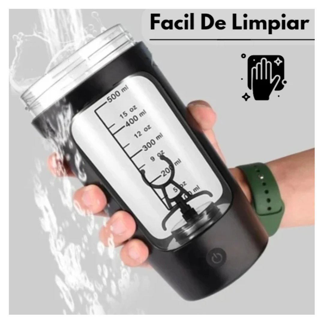 Solo añade agua y jabón, agítala unos segundos y listo. Sin piezas sucias, sin complicaciones, lista para el siguiente batido.